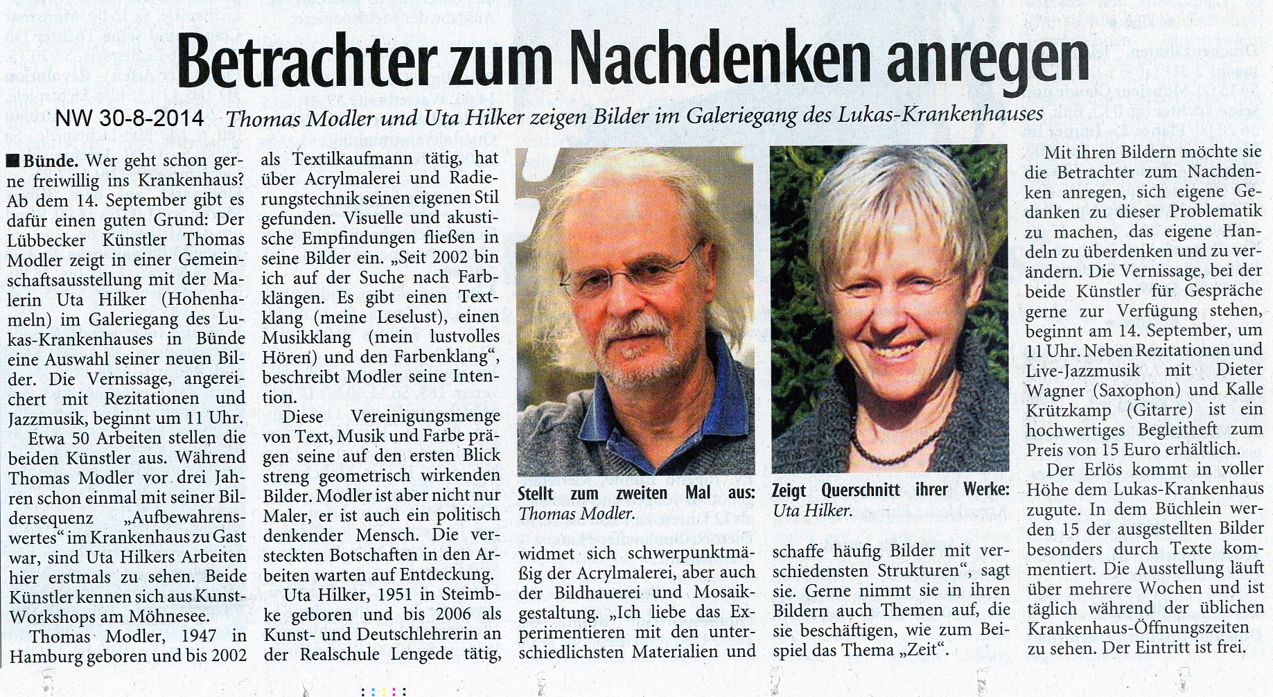 Ausstellung: Glück gehabt - Regionalzeitung Bünde 30.08.2014