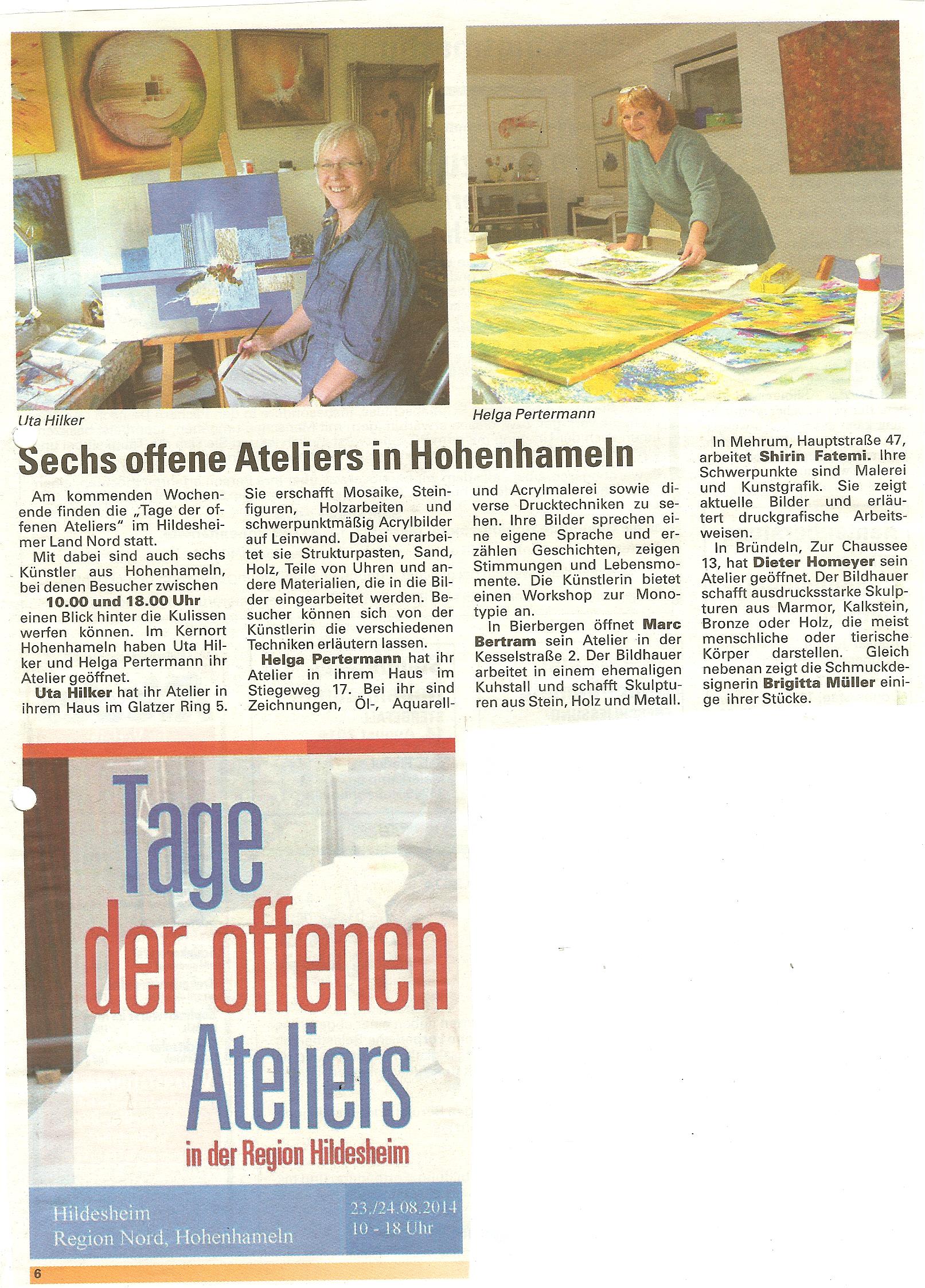 Sechs offene Ateliers in Hohenhameln - Wochenspiegel 21.08.2014