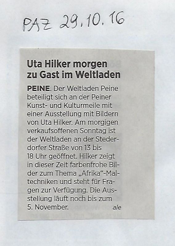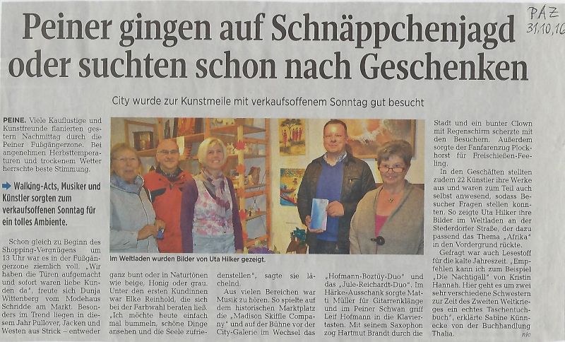 Uta Hilker im Weltladen - Peiner Allgemeine Zeitung 29.10.2016
