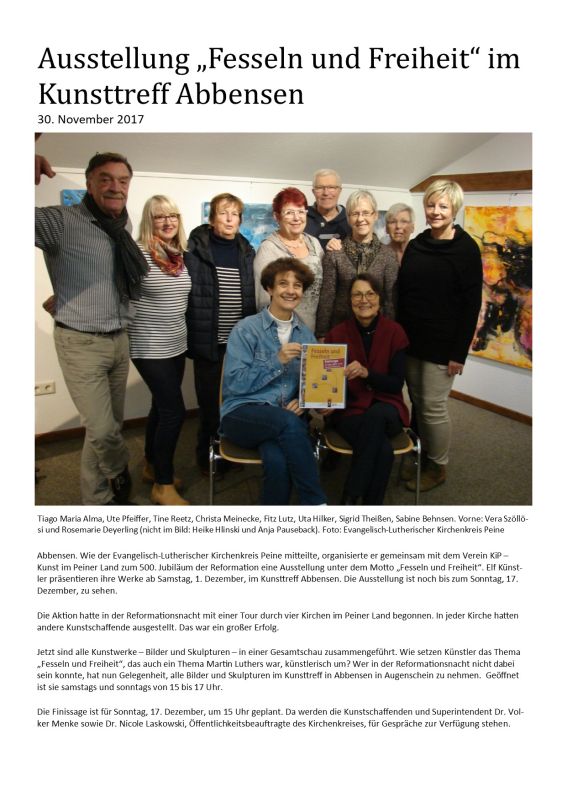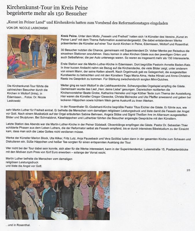 Kirchen-Kunst-Tour "Fesseln und Freiheit" - Peiner Allgemeine Zeitung 02.11.2017