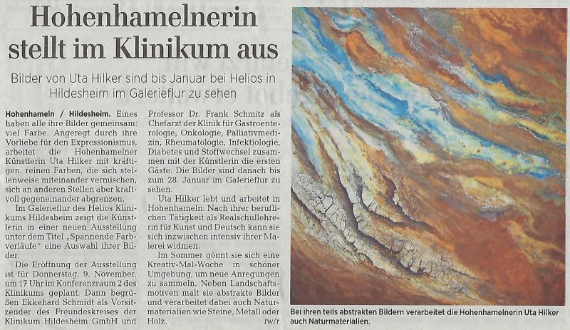 Hohenhamelnerin stellt im Klinikum aus - Hildesheimer Allgemeine Zeitung Nov. 2017