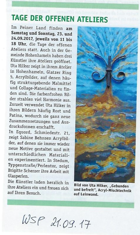 Offene Ateliers im Peiner Land - Wochenspiegel Hohenhameln 21.09.2017