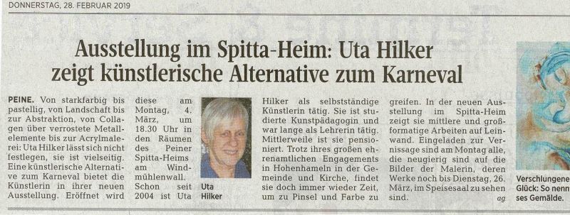 Ausstellung im Spitta-Heim - Peiner Allgemeine Zeitung 28.02.2019