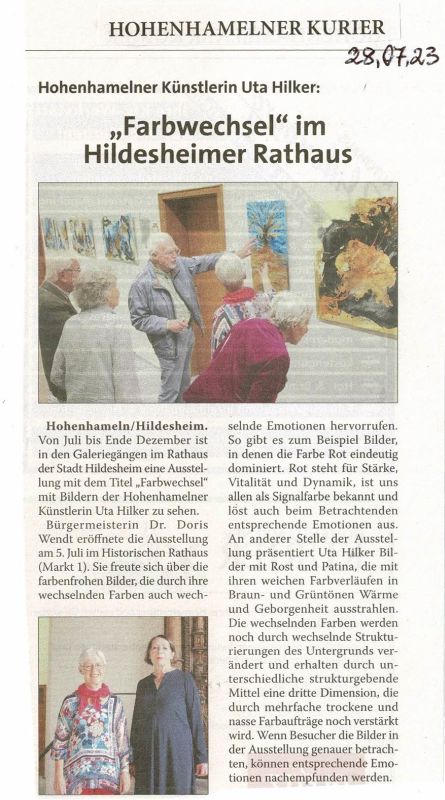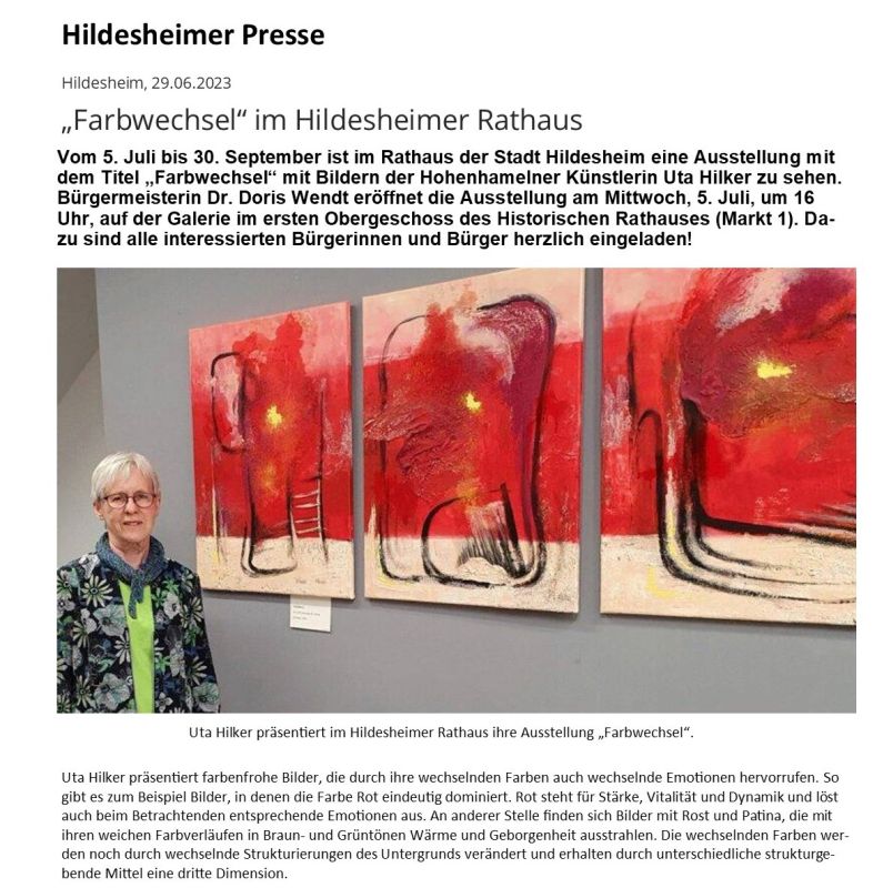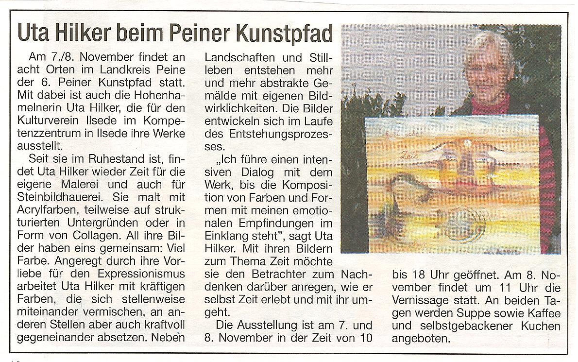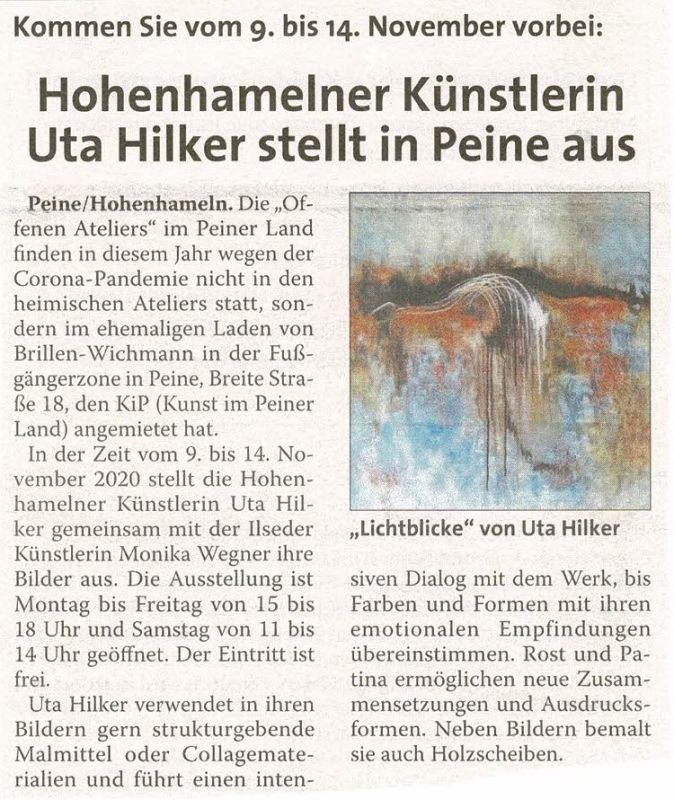 Hohenhamelner Künstlerin Uta Hilker stellt in Peine aus - Hohenhamelner Kurier 29.10.2020