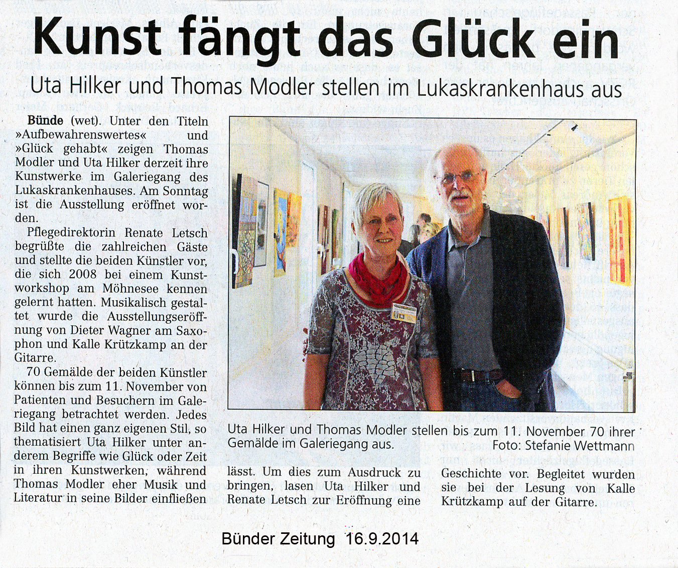 Kunst fängt das Glück ein - Bünder Zeitung 16.09.2014