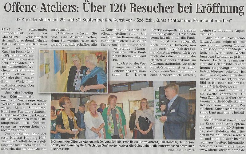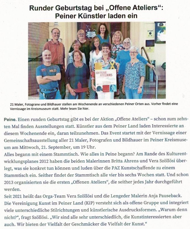 10 Jahre "Offene Ateliers" - Peiner Allgemeine Zeitung 220.09.2022
