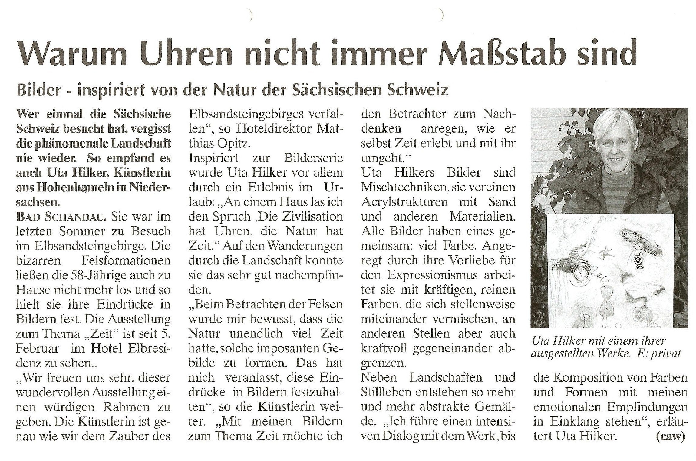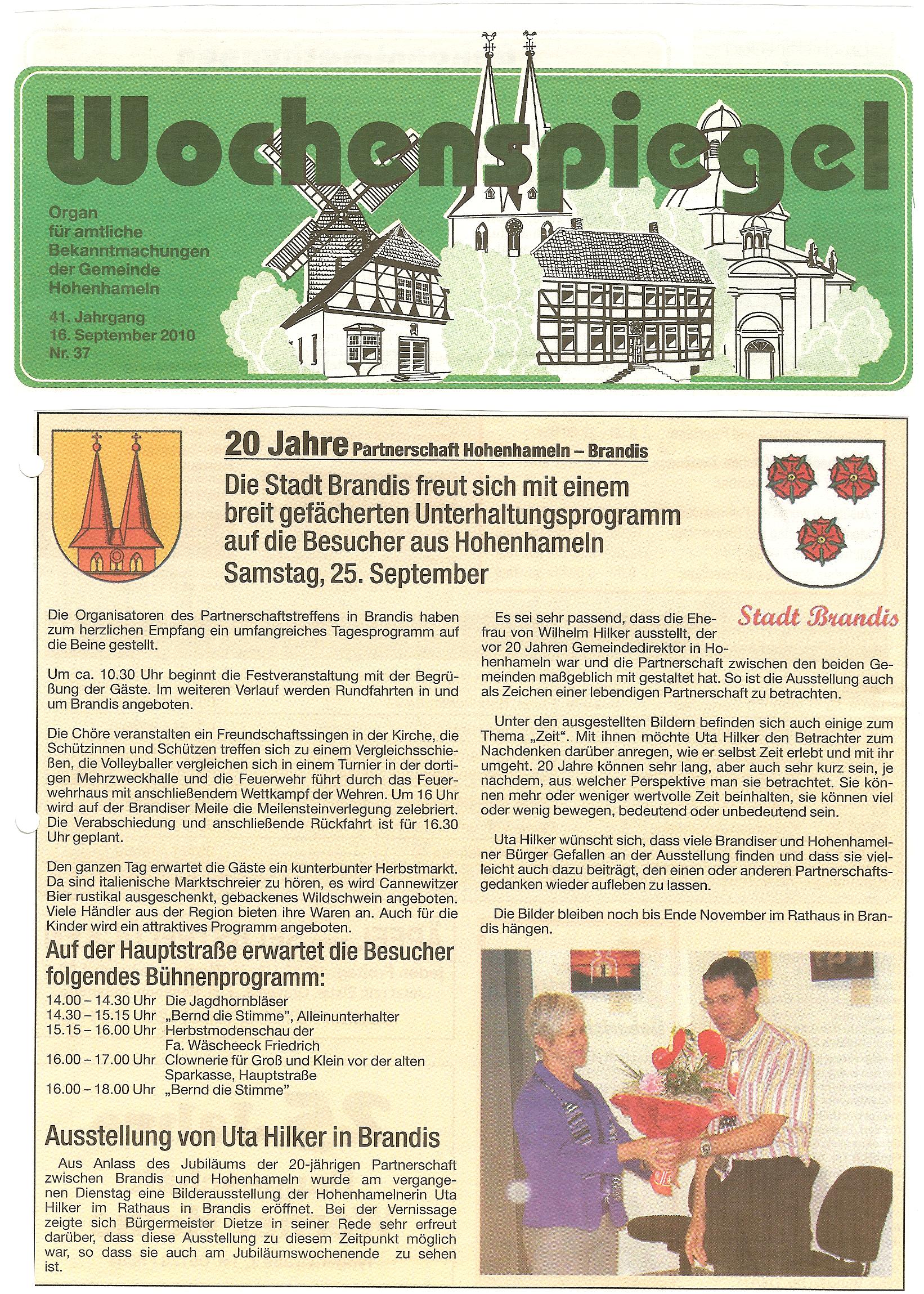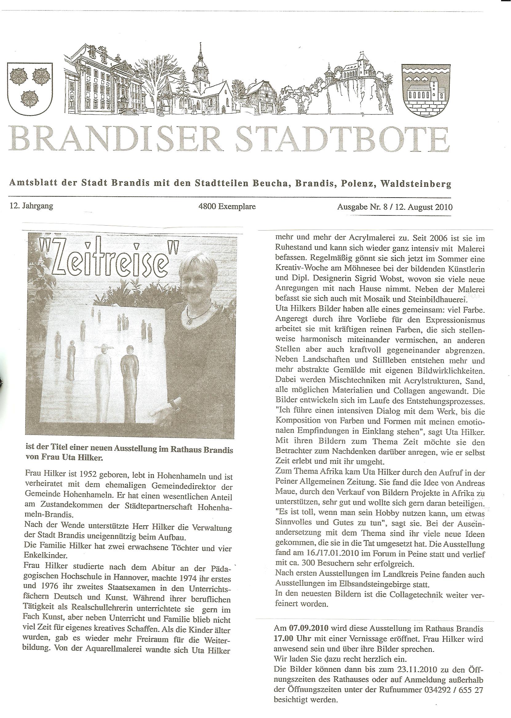 Ausstellung von Uta Hilker in Brandis - Wochenspiegel Hohenhameln vom 16.09.2010