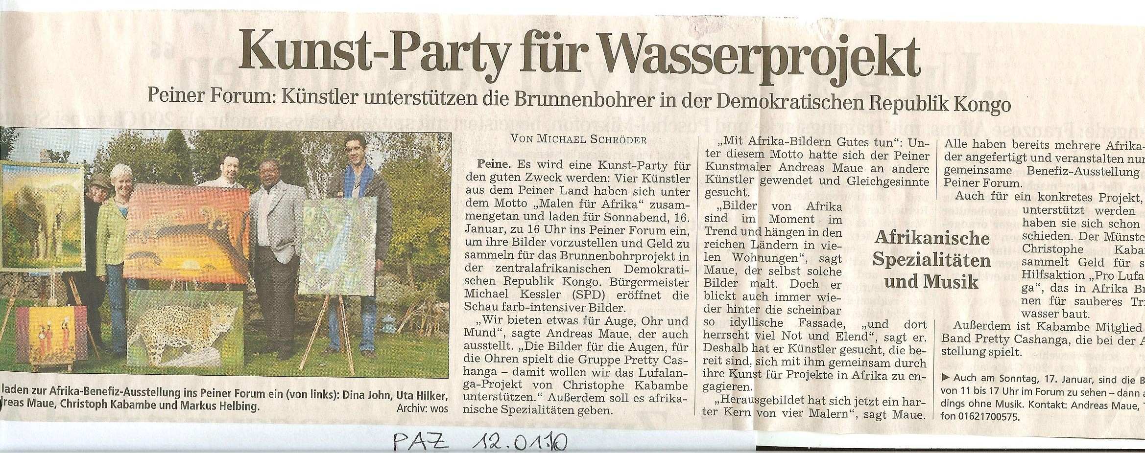 Kunst-Party für Wasserprojekt - PAZ vom 12.01.2010